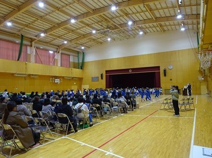 南小学校の現1年生によるダンス発表を体育館で観たり、校舎に入って1年生の授業参観や図書室、給食室などの見学をしたりしました。