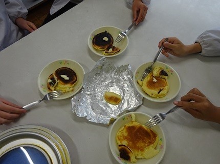 先週、6年生が家庭科の調理実習で「ホットケーキ」を作りました。
