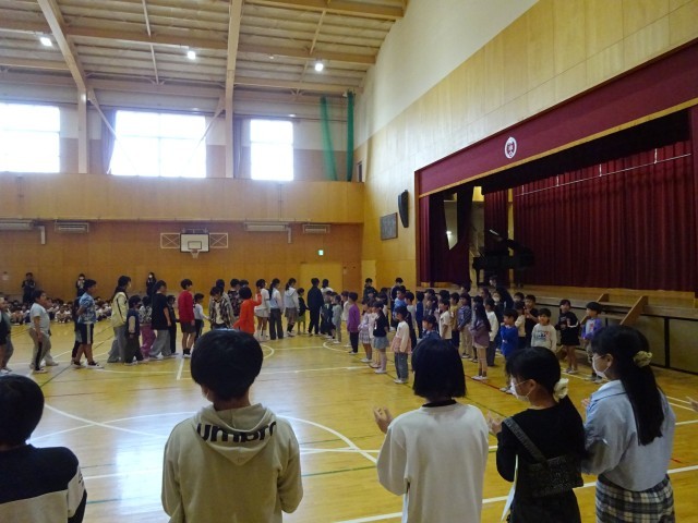 4月24日(金)「1年生を迎える会」が体育館で行われました。児童会のみなさんによる司会・進行で始まり、1年生の入学を学校全体で歓迎したいという気持ちがよく伝わる会となりました。はじめの言葉、校歌斉唱に続いて、上級生からのプレゼント(2年生アサガオの種、3年生おすすめカード、4年生校歌歌詞カード、5年生ペンダント)が言葉を添えて手渡され、児童代表による歓迎の言葉が読み上げられました。その後、お返しの1年生からの歌も披露されました。みんなで力を合わせて、南小を世界一ワクワクする学校にしていきたいと思います。