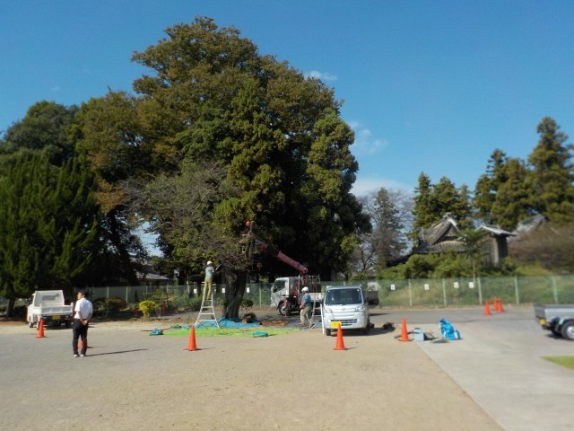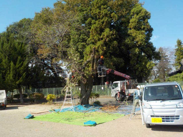 残念ながら、害虫等の影響で立ち枯れが進行し、雨風の強い日には直径10cmを超える太さの枝が落ちるようになったので、伐採することにしました。桜に限らず、学校にはたくさんの木が生えています。しかしながら、高木となると十分な管理(手入れ)はできません。「緑の多い学校」は理想ですが、長い目で見たときの「管理」を考えると、植栽等、簡単には判断できないなと感じています。
