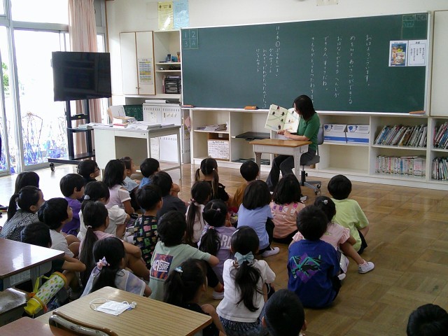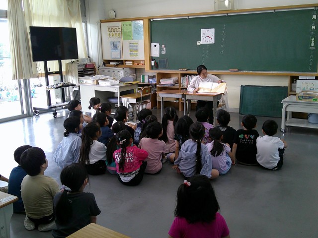 本校では、PTA親子読書を担当していただいている役員の皆様に、1・2年生に「読み聞かせ」をしていただいています。子どもたちは「読み聞かせ」が大好きです。小さな本の絵を一生懸命見ながら、お話を聴いています。