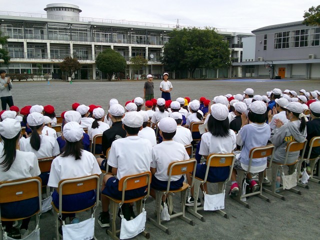 最高の運動会にしようと、どの団の団長も熱い思いを語っていました。話を聞いている団の子どもたちも大きな声で返事をしたり、一緒に声を出したりしながら盛り上がっていました。