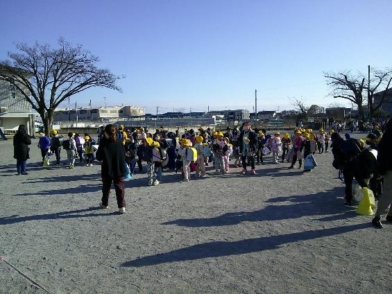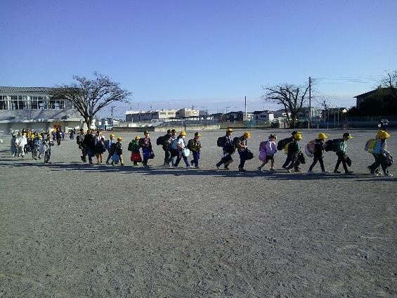 風のない暖かな午後、安全な登下校のための集会を行いました。車に気を付けて一列で歩くこと、通学路を通ること等、改めて確認しました。