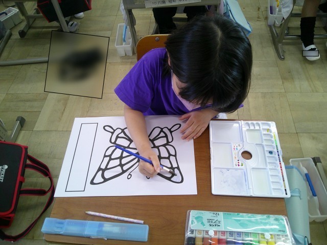 赤、青、黄色の3色だけ使って、いろんな色を作って、きれいに色塗りをしていました。
