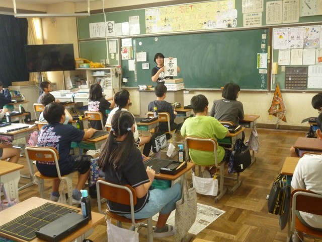 9/19(金)の5・6年生・こばと1,2,3組の授業風景です。5年1組は、国語の時間でした。漢字スキルを使って漢字の学習を行っていました。5年2組は、算数の時間でした。倍数や公倍数の学習をしていました。6年1組は、国語の時間でした。習字に取り組むところでした。6年2組は、算数の時間でした。平均値についての学習をしていました。こばと1,2,3組は、それぞれ、自分の学年の国語や算数の教科書やプリントの問題に取り組んでいました。学年の協力学級で図工や音楽の授業に取り組んでいる子も多かったようです。それぞれが、全力で学習に取り組み、実力を身に付けてほしいと思います。