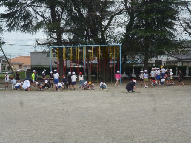 9/19(金)の朝活動は、VS(ボランティアサービス)活動でした。たてわり班ごとに集合して、校庭の除草作業や石拾いをしました。朝の短い時間でしたが、たてわり班の班長を中心に、運動会に向けて校庭をきれいにできました。運営をした代表委員の児童も活躍できました。最後に草をまとめて一輪車で運んだり、放送器具の片付けをしたり責任を持って活動できました。