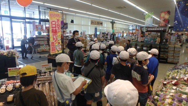 9/22(月)に3年生が社会科見学として、スーパーマーケットの見学に行きました。社会科で学習したスーパーマーケットで働く人々の工夫や努力について、実際の店舗で観察して、店員さんから話を伺いました。お忙しい中、分かりやすく説明をしていただき、質問もできました。