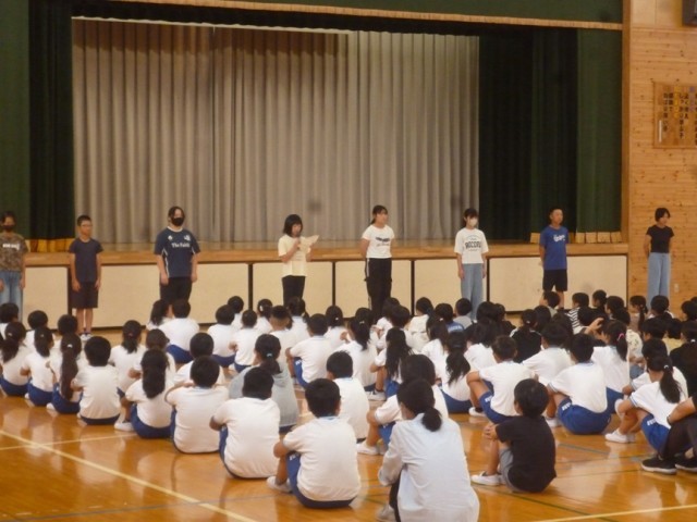 9/30(火)の朝行事は、児童集会でした。この日は、後期委員会の活動について各委員長が発表しました。