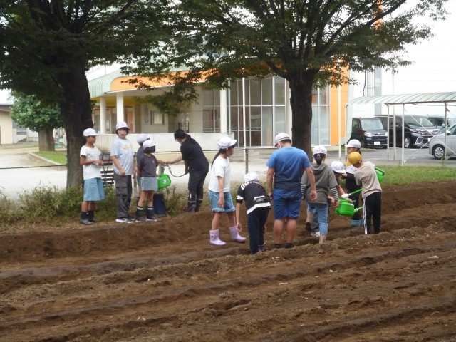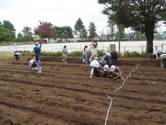 10/15(水)に4年生が校庭北隅の畑に、冬野菜の種をまきました。