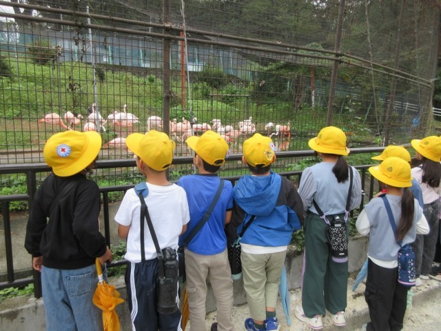 昨日から心配された天気も、何とか曇りのまま子どもたちは遊園地で乗り物に乗って楽しく過ごせました。そして、グループの友達と話し合いをして決めた乗り物に乗ることができました。公衆道徳や集団行動の気持ちを学ぶことができました。その後、お昼をおいしくいただきました。最後に、少し雨に降られながらも動物園を見て回り、楽しめたようです。
