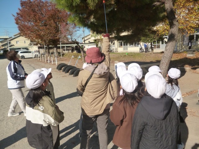 フォレストリースクールとは、群馬県の林政課が行って事業です。森林や環境に関する学習支援として行っています。この日は、講師の方がお忙しい中、4名来ていただきました。校庭の松やけやき、トウカエデなどの葉や実を観察してクイズをしたり、簡単なゲームをしたりして自然に触れさせていただきました。