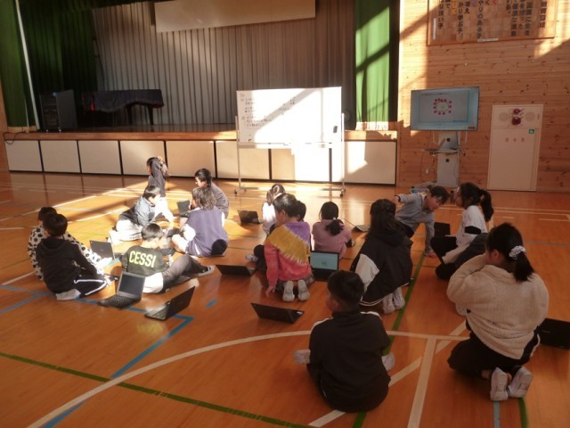 今年度の校内研修では、研修の主題として「自分で考え、自分なりに表現できる児童の育成」を掲げて、ねらいを明確にした話し合い活動を通して表現力向上につながるような取り組みを行っています。