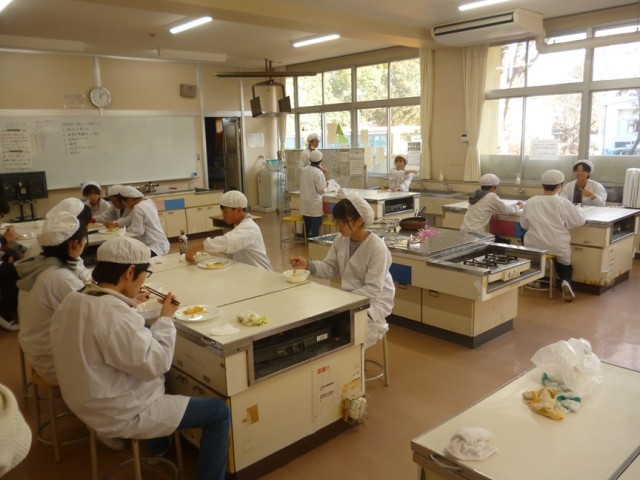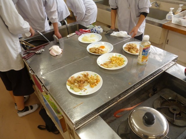 12/11(木)に6年生が調理実習を行いました。1,2校時を使って1組が、3,4校時に2組が実施しました。この日は、ジャーマンポテトと玉子料理を作っていました。フライパンでじゃがいもや玉ねぎなどを炒めて塩、こしょうで味付けをしていました。卵料理については、各自でゆで卵にしたり、目玉焼きにしたり、スクランブルエッグにしたりと選択して味付けも塩や醤油、こしょうなどを考えて調理しました。グループごとに協力したり、各自作業したりとテキパキと取り組んでいました。その後、グループごとに座って、自分たちの作った料理を楽しんで味わっていました。