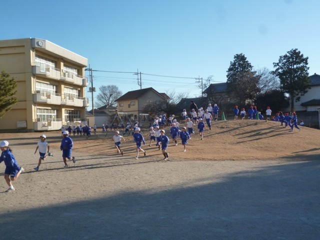 準備運動をして、最初30秒間はゆっくりスタートして、その後自分の力に応じて走りました。たくさんの児童が同じ時間で前回よりも長く走れました。
