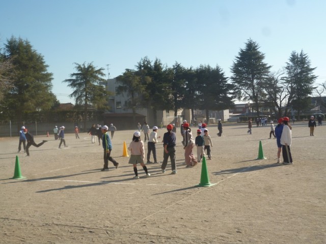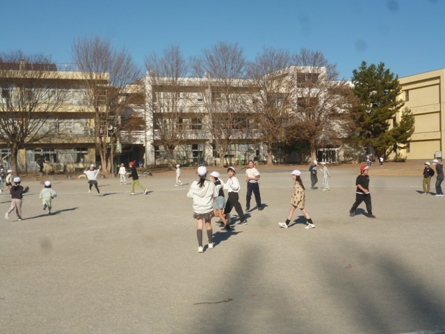 今月の体力づくりイベントは、ケイドロでした。18日を1,3,5年、19日を2,4,6年生の自由参加として行いました。寒い中でしたが、全校のほとんどの児童が参加しました。
