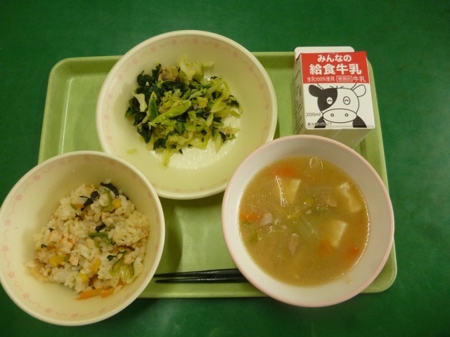 おおたを食べようの日(給食) 公開日 2026/02/02 更新日 2026/02/02 お知らせ 1/29(木)の給食は、「おおたをたべようの日」でした。食材のほとんどの野菜が太田市産でした。献立も「太田市産小松菜ご飯、太田市産野菜のさっぱりあえ、太田市産野菜たっぷりの豚汁、牛乳」でした。 この日の給食に使われている太田市産のものは、ご飯、にんじん、小松菜、ほうれん草、大根、キャベツ、白菜、長ねぎ、里芋でした。地元の食材をおいしくいただきました。