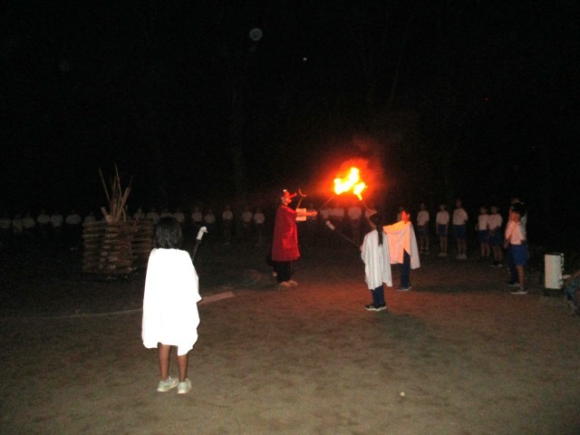 火の守たち。それを見つめる5年生。