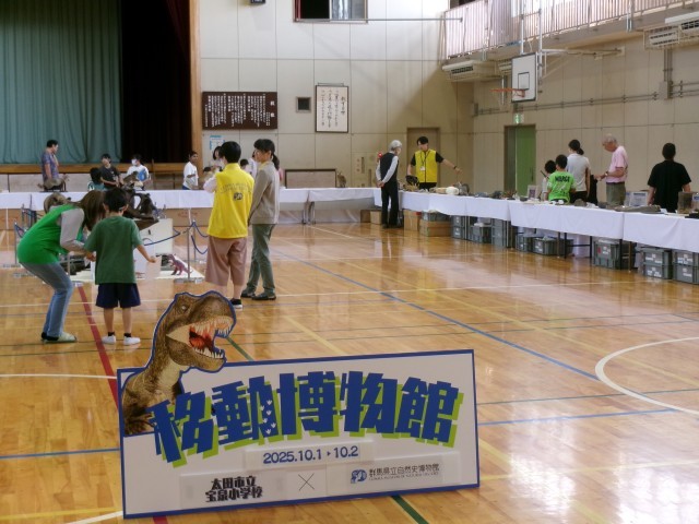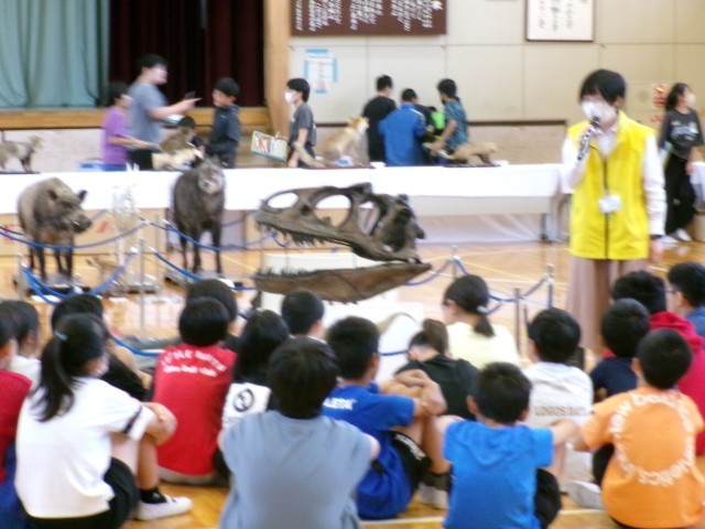 化石やはく製などさまざまな標本が体育館に展示されました。