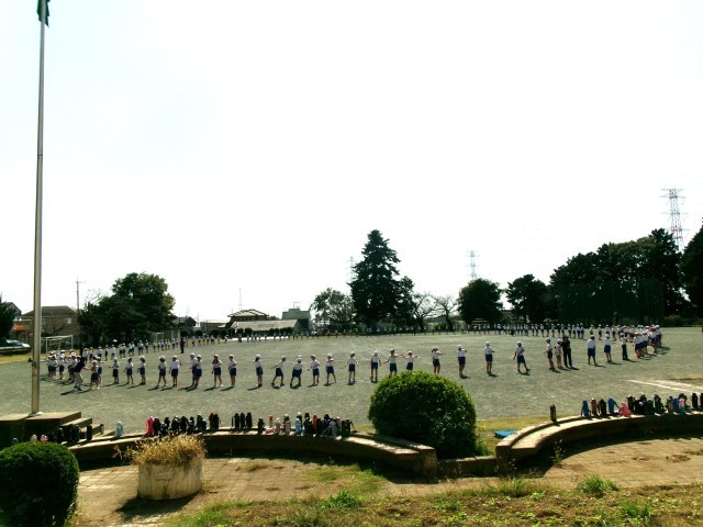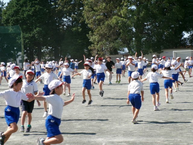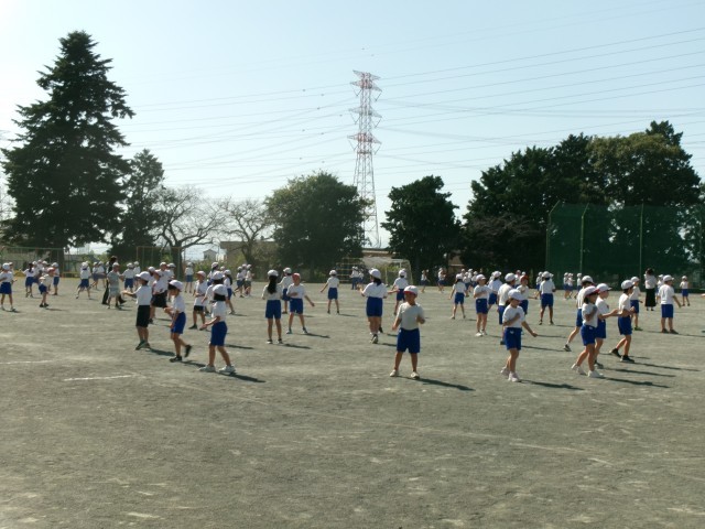 秋晴れの空の下。校庭では、3・4年生が