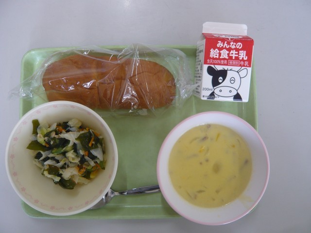 わかめツナサラダ 牛乳 です。