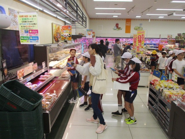 3年生が社会科見学として、地元のスーパーマーケットの「とりせん」を訪れました。流通の仕組みや陳列の工夫などを学習しました。
