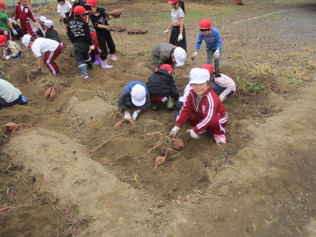 10月22日(水)、2年生がサツマイモの収穫をしました。大きなイモたくさん穫れました。今年は豊作です。