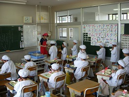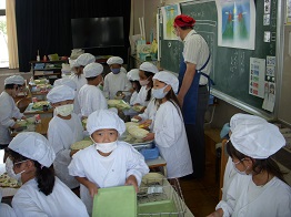 給食当番もしっかりできるようになっています。さすが、1年生。今日は肉じゃがです。「肉じゃがはおかわりしないと」と言って並び始めました。
