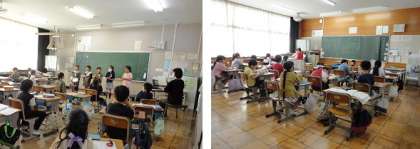 国語は作文です。並んで先生に見てもらっています。音楽は発表です。ちょっと照れもありますが、堂々とした発表です。