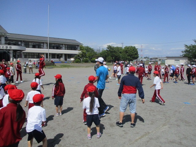 本校では、委員会活動の一つに「体育委員と遊ぼう」を行っております。一年間に何度も実施いたします。体育委員会が中心となり、異年齢交流を楽しんでいます。今日は1年生と6年生でドッヂボールを楽しみました。若手の先生もまじって昼休み遊んでいます。