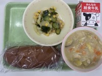 10月1日の給食には、群馬県産しらたきを使った「しらたきサラダ」が出ました。群馬...