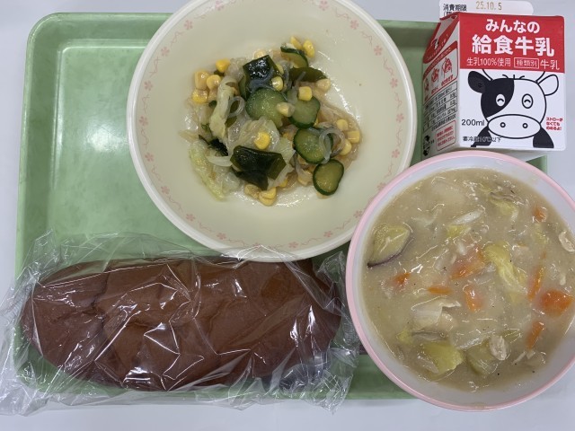 10月6日は十五夜。毛里田小の給食も「十五夜献立」でした。秋が旬の里芋や根菜をた...