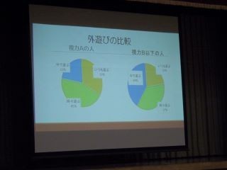 視力A(1.0以上)の人と、視力B以下(0.9以下)の人では、Aの児童の方が、①早寝をしている ②朝食をきちんと取っている ③外遊びをする 人が多いという結果に、「え、そうなの?」というような声が聞こえます。