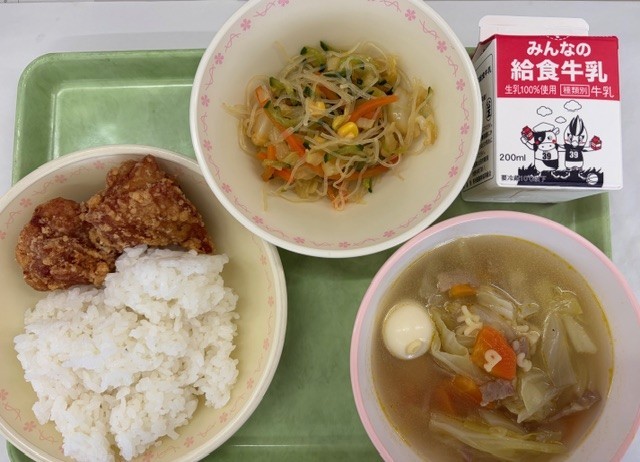 今日の給食は、給食委員会の児童が考えた「元気もりもり献立」でした。