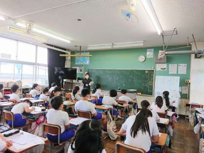 テストで間違いの多かったところを、学級全体で確認しています。指導と評価の一体化を目指して、担任の先生も頑張っています。
