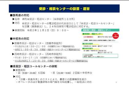 季節性インフルエンザと新型コロナウィルス感染症の区別が困難な状況が予想されるので、群馬県の対応についてのお知らせです。よろしくお願いいたします。