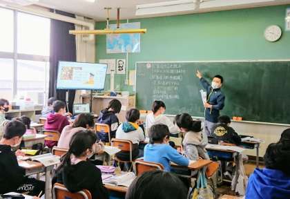 歌舞伎や浮世絵は、どのように人々に親しまれたか、について学習しています。このクラスは社会科が好きなんだなと感じるとともに、学習課題にかかわり、自分の知っている知識や経験を率直に出しながら、学習を進めていました。