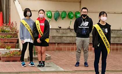 【あいさつ名人の子どもたち】によるあいさつ運動の活性化が図られています!