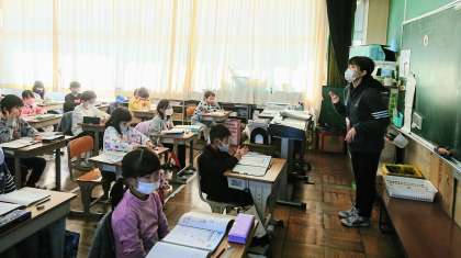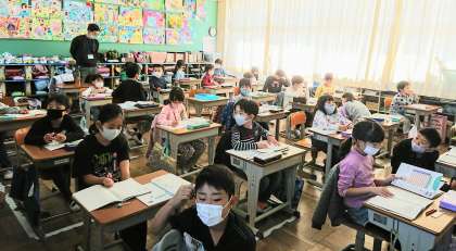 6のだんの九九をつくる学習です。つくり方について、隣の友だちとペアで考えの交流をしています。黒板には、吹き出し交流の形での板書がされました。机の上もきれいに学習道具や教科書、ノートがセッティングされ、落ち着いた雰囲気の中で、集中して学習しています。日々の成長を実感する2年生です。