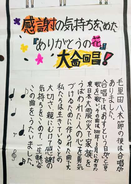 【ありがとうの花】の大合唱の真意を汲み取ってくれて、その精神的な成長にありがとう!