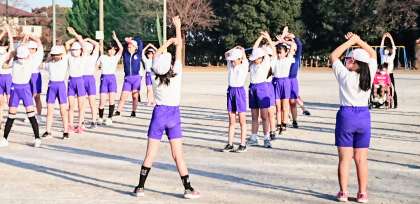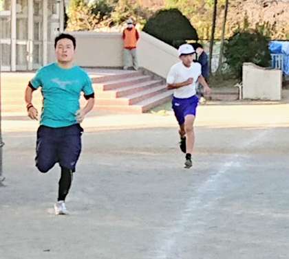 走り終わりました。最後に整理体操です。走り終えた満足感と笑顔が入り交じるひとときです。仲間とのつながりを大切にして明日の生きる糧にしてほしいと思います。先生たちも、お疲れ様!