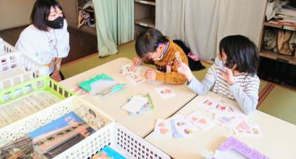 時計の読み方や、カルタをしたり