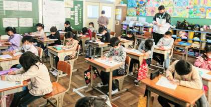 新出漢字の学習で、子どもたちひとりひとりのノートやプリントをチェックしています。きれいに書けるようになってきました。