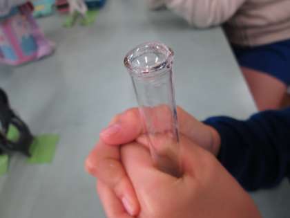 試験管にシャボン玉の膜をはって、試験管の中に空気を閉じ込め、