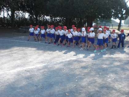 授業の時間走は、自分のペースで2分間校庭を走るというものでした。20分休みにコツコツ練習に励んだ成果がでて、自己新記録を更新する子もいました。