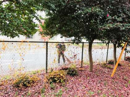 男子校務員さんが毎日掃除してくれています。落葉の時期を迎えて落ち葉掃除に追われますが、頑張っています。
