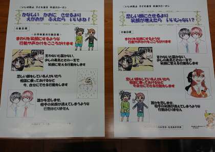 過日、毛里田中学校の校長先生と一緒に、区長会でいじめ防止子ども宣言のポスターの掲示をお願いしてきました。地区ごとに3枚ずつ配布させていただいています。【コロナいじめは絶対に出さない毛里田地区】であることを地域社会の皆様とともに、取り組んでいきたいと思います。今後も、地域の皆様、保護者の皆様、コロナ禍の中での人権尊重にお力添えをお願いします!【みんな○】の毛里田小として、これからも頑張ります。