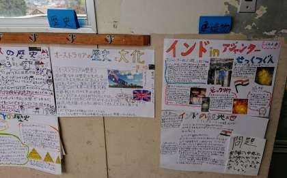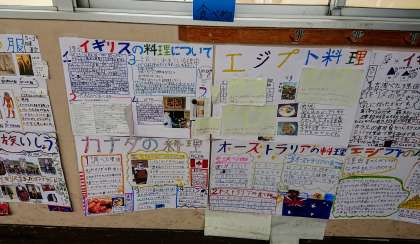国際理解に関わる子どもたちの調べものが5年生の3階通路に掲示されています。通路両脇の壁に掲示されましたので、ぜひ見てもらいたいと思います。