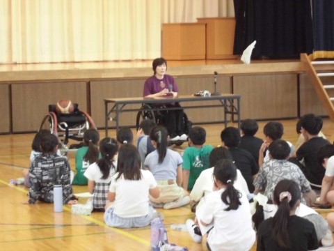 車椅子生活での経験や、車椅子バスケットボールの話を実技を交えてお話しいただきました。