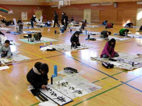 1月23日、1、2校時で4年生が、3,4校時で3年生が書き初めを行いました。