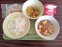 今日の献立は厚焼き玉子白菜のみそ汁ごぼうめしそして牛乳です。朝どりの地元細谷産の...